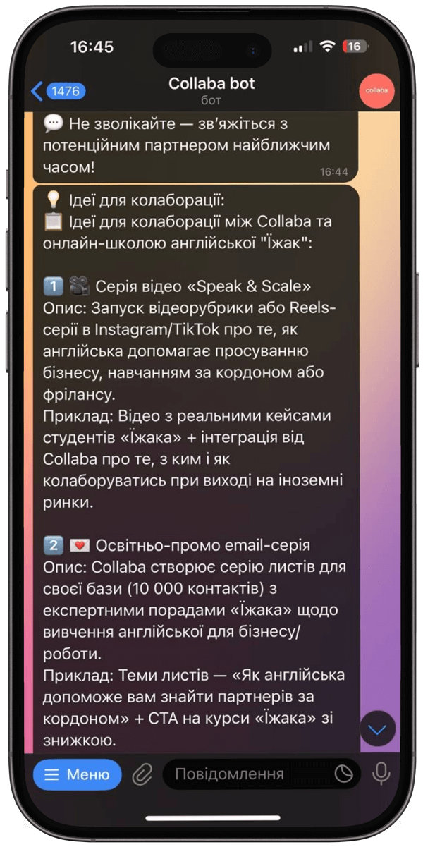 Отримайте ідеї співпраці від ШІ й переходьте до реалізації.